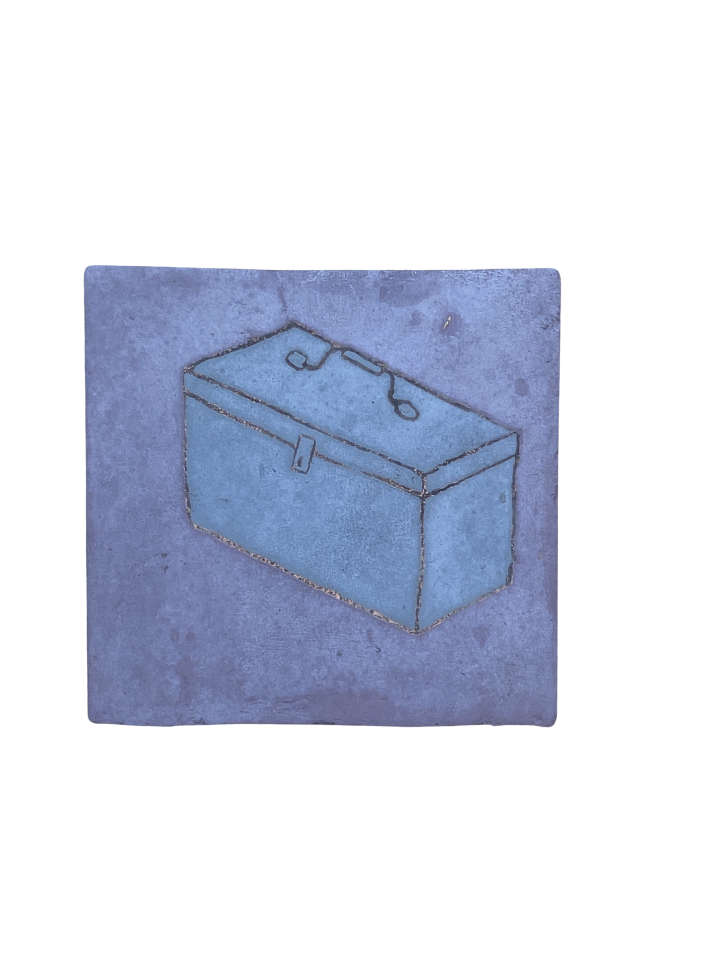 Tool Box 1, 8" x 8", Enamel on found Terracotta tile, 2022