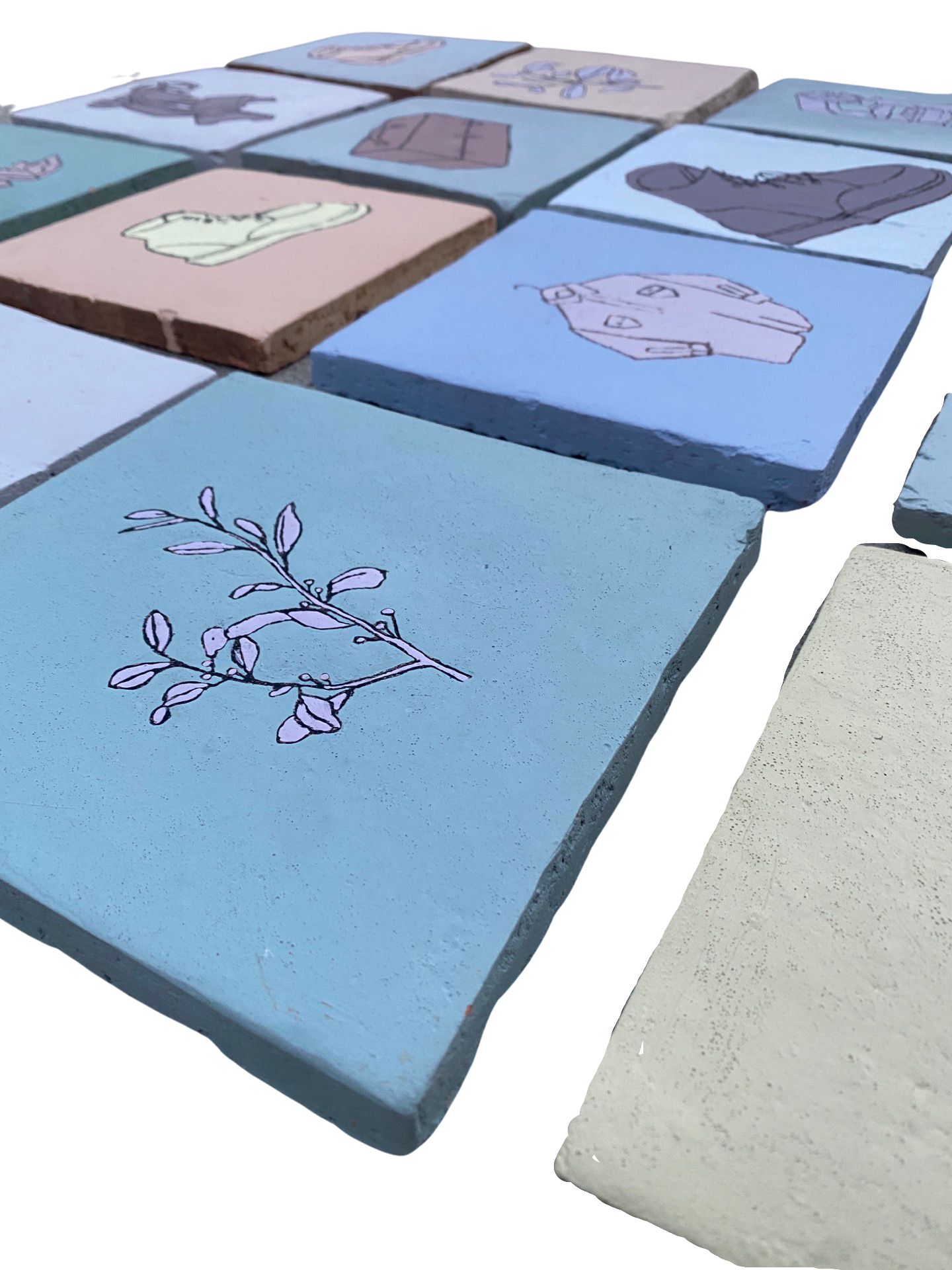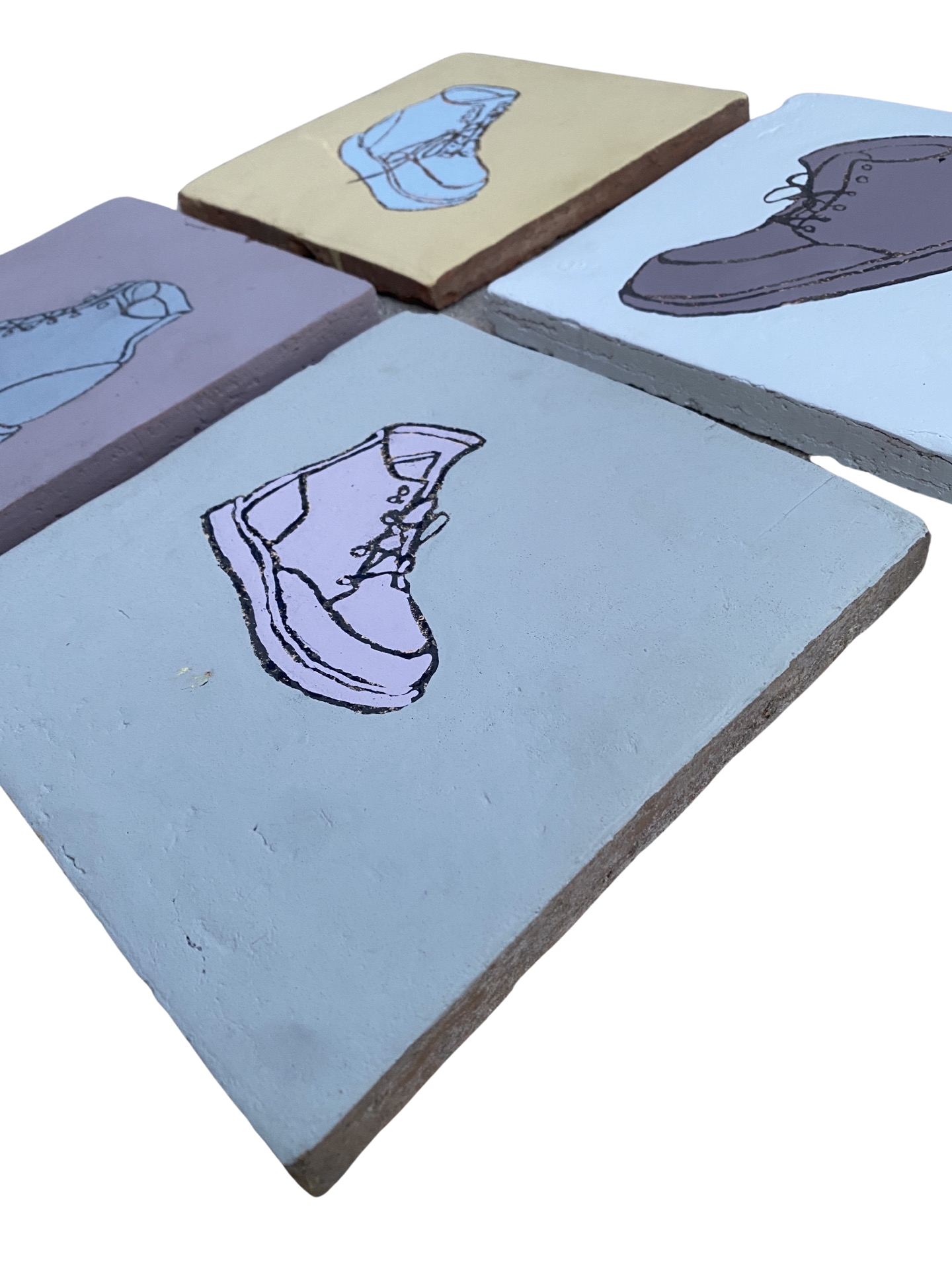 Work Boots #1, 18" x 27", Acrylic on found Terracotta tile, 2020